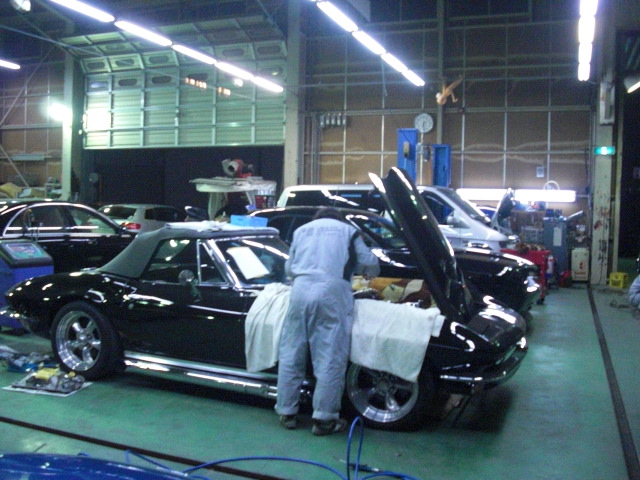 チャレンジャーの横の修理でお預かり中のコルベットを見に行くと