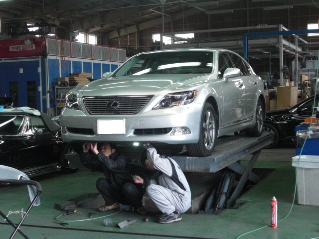 LS600h、フロントスポイラー取付け完了ですー!