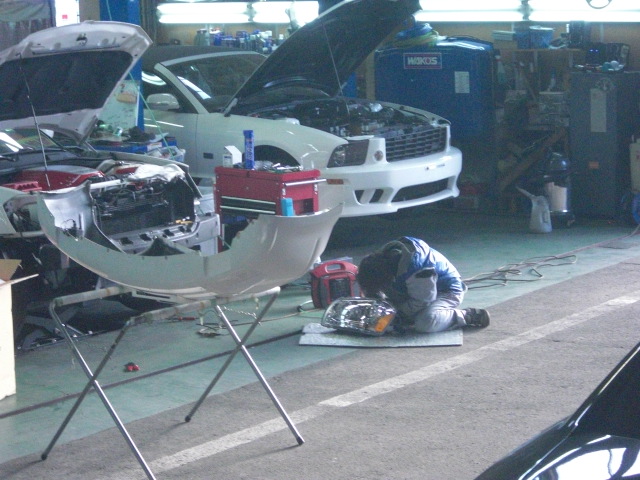 ヘッドライトを山田さんが交換している途中のようでした