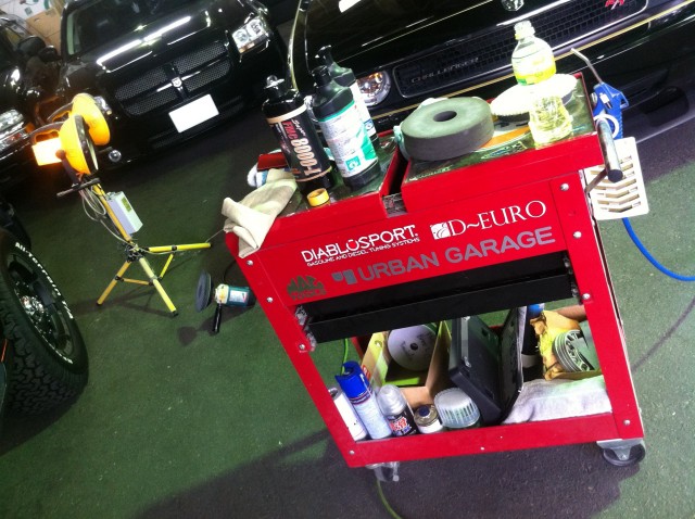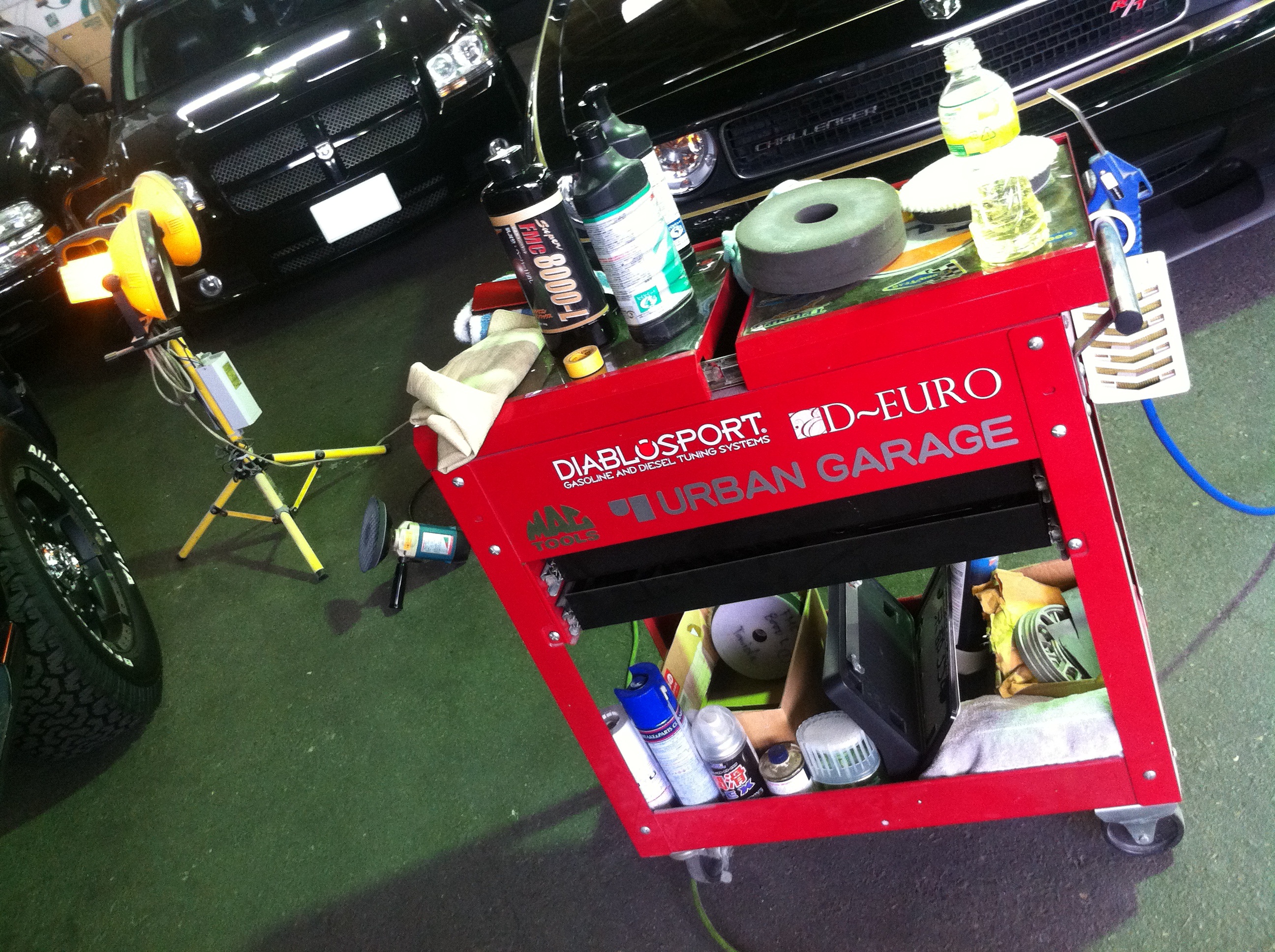 チャレンジャー × 300C 2012年9月21日 ニュース&最新情報 ツイート お預かり中のチャレンジャーをUGオーナーと大石さんが 半分半分でガラスコーティングをかけています^^* UGオーナのコーティングセット* 今日から修理でお預かりの300C! こちらの300Cのオーナー様にもオイル交換とナビ取付でご来店頂きました^^ オイル交換までにエンジン冷まし中* ラジエターの修理が終わって本日納車のチャレンジャー* サーキットに行かれるそうな^^! 皆さまいつもご来店誠に有難うございます! 齊藤