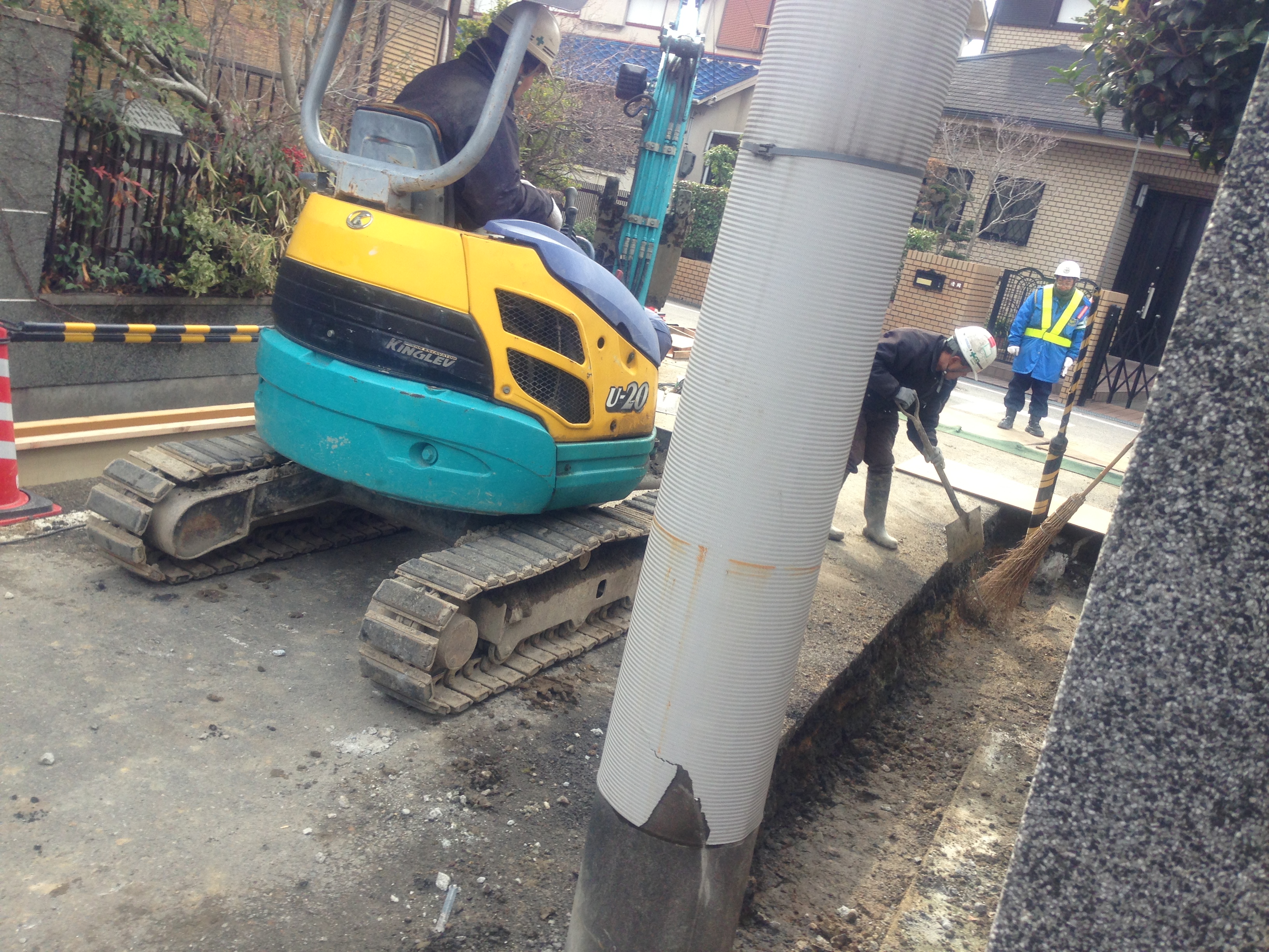 工事のおじさん達がガレージから出れるように重機をすべて撤去、ガレージから出れるように