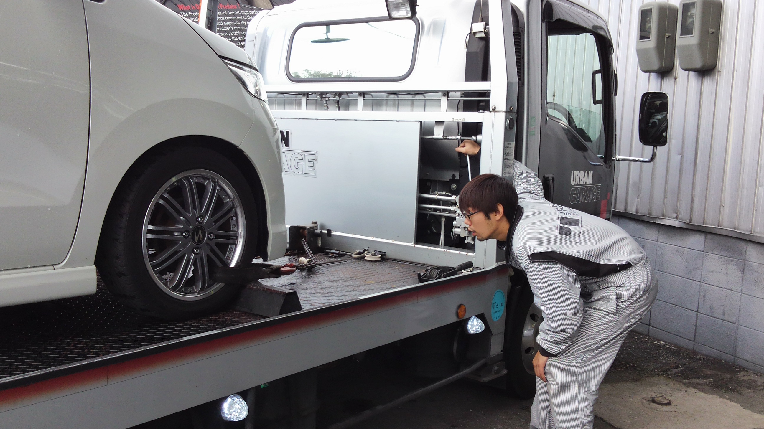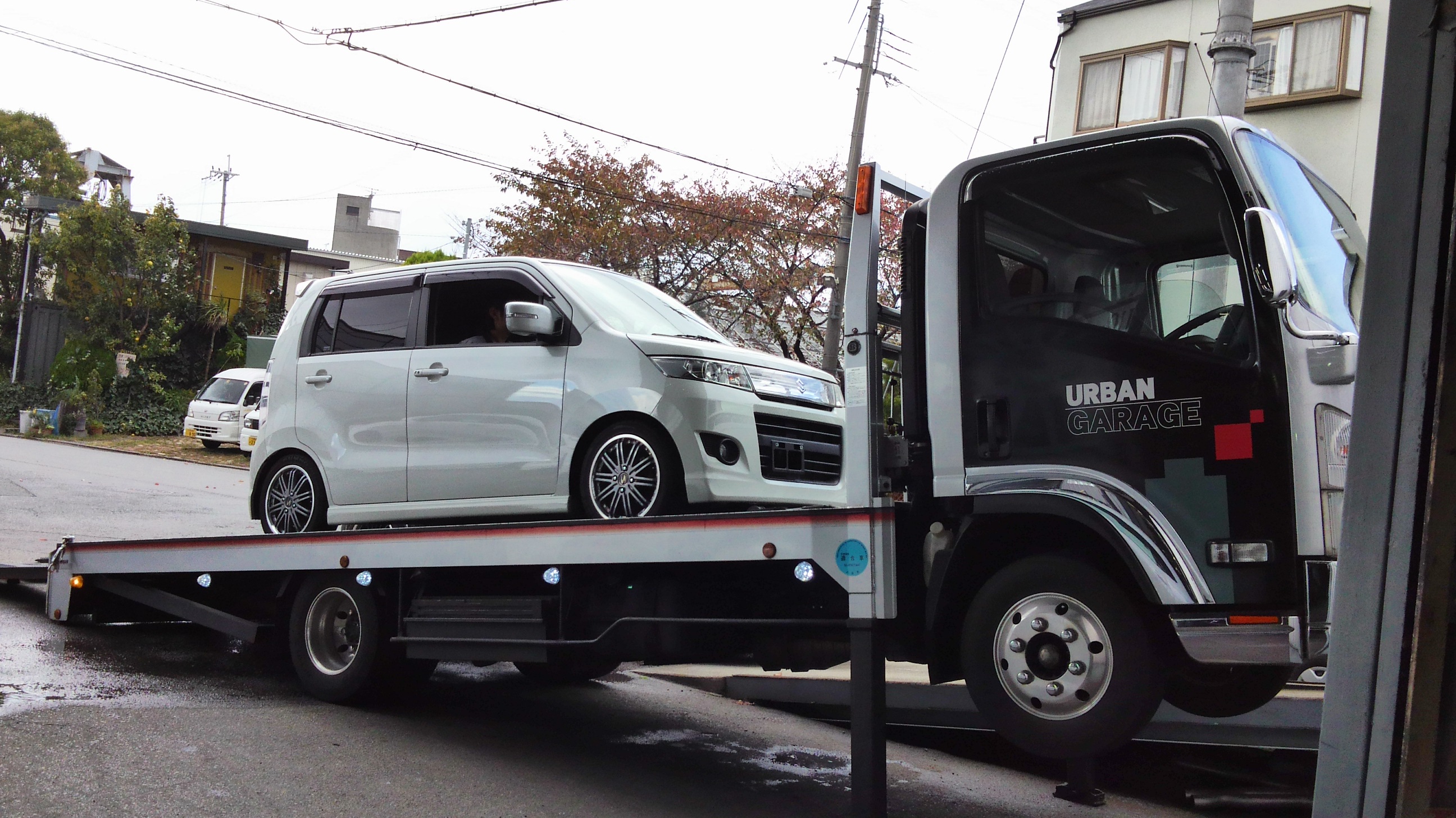 積車に乗せる!!!!!大石さんが。