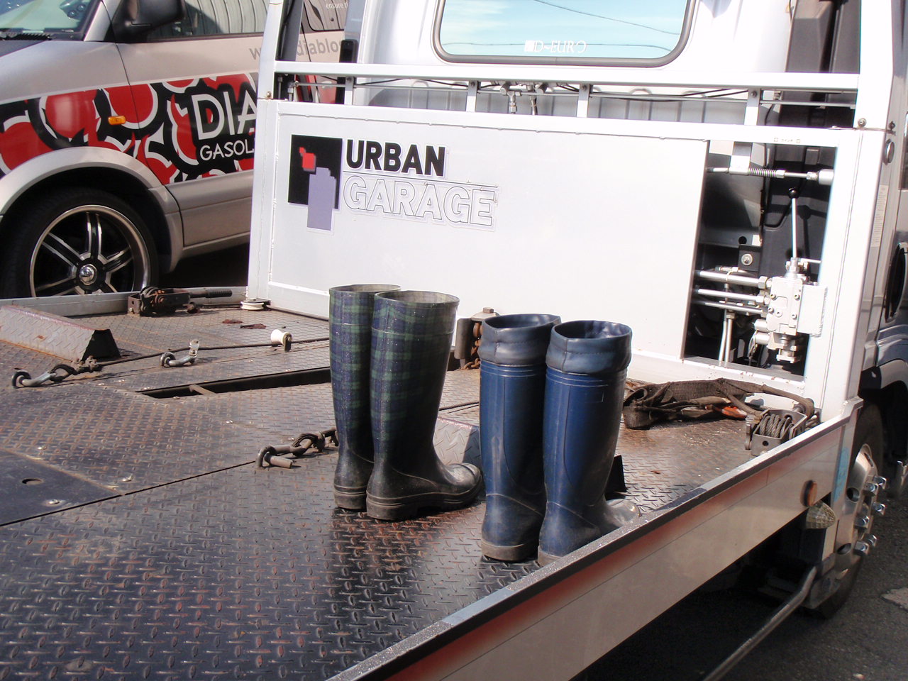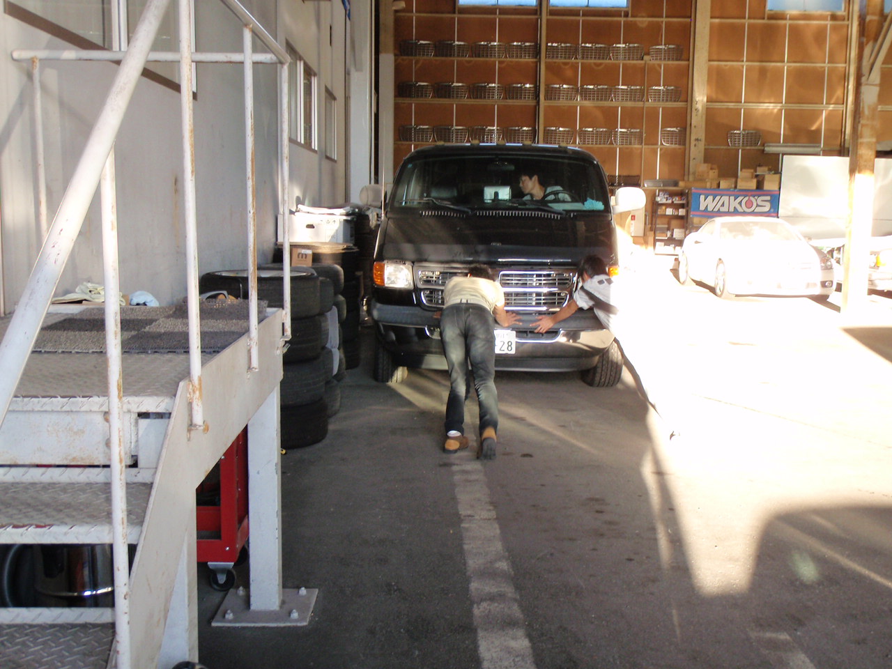 快晴!! 2014年9月29日 ニュース&最新情報 ツイート 毎日暑い日が続きますね UGはバッチリ日当たりが良いので、毎日、全員が汗だくです 動かないッダッジバンを 吉田さんが一人で押してます 大変です・・・ 吉田さんが乗り込んでオーナーと大石君が押してます 汗だく・・・ いつも洗車で履いている長靴を積車の上で天日干し こういう繊細なことを いつもしてくれるのは 山田君です アザースm(_ _)m しかし毎日暑いですね 明後日から10月です 季節の変わり目に体調を 崩しやすいので注意しましょうね かわばた
