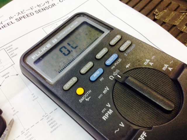 確かにテスターで実測値を測定すると、走行してるにもかかわらず、やはり左のリアだけ車速0Km…