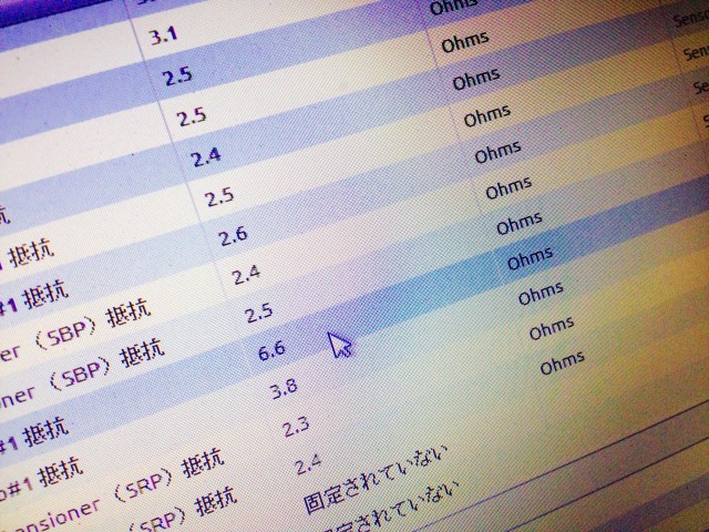 さらに実測値を調べてみると、完全な断線ではなく、コード入力されている箇所のスクイブの抵抗が大きい状態。