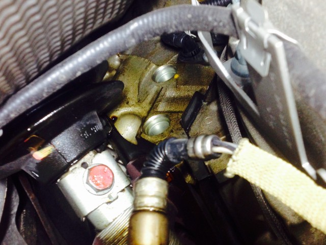 プラスチックパーツなので、経年劣化による変形等が原因で、ここからオイルが漏れてマフラーに…というパターン。