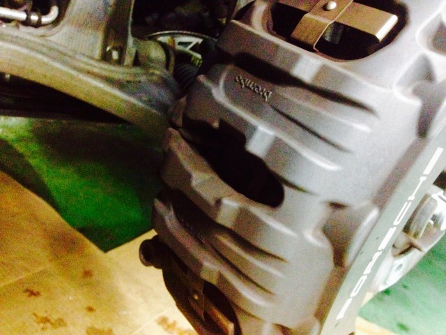 近年のポルシェに採用されているブレンボキャリパーは、より剛性化を計り、通常よくあるディスクパッドがピンで止まっていて、入れ替え交換できる構造ではありません。