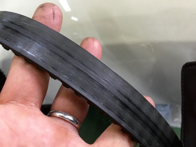 普段は目に触れることのないタイミングベルトですが、定期交換部品としては最も重要で、損傷した場合の代償も大きいので、この辺りのメンテナンスはちゃんと記録/管理しておきたいところです。