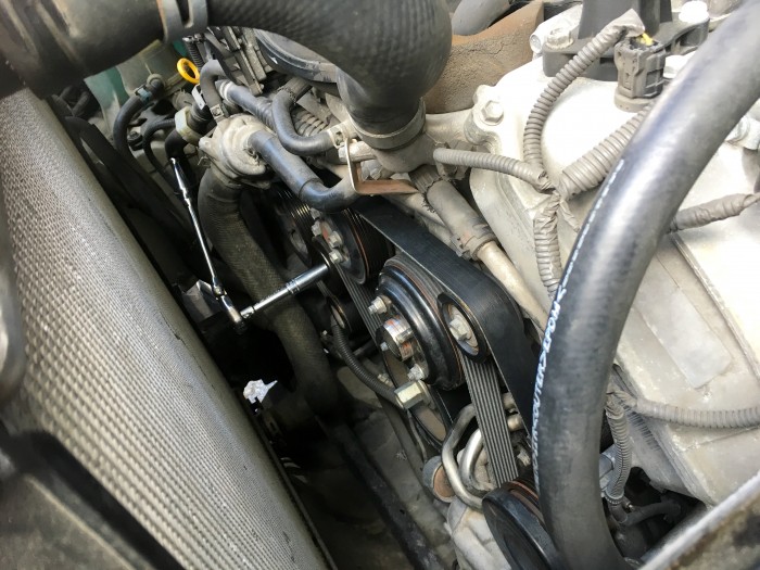 ベルトの張りを調整する、テンショナーが損傷して、外すとバラバラ状態。