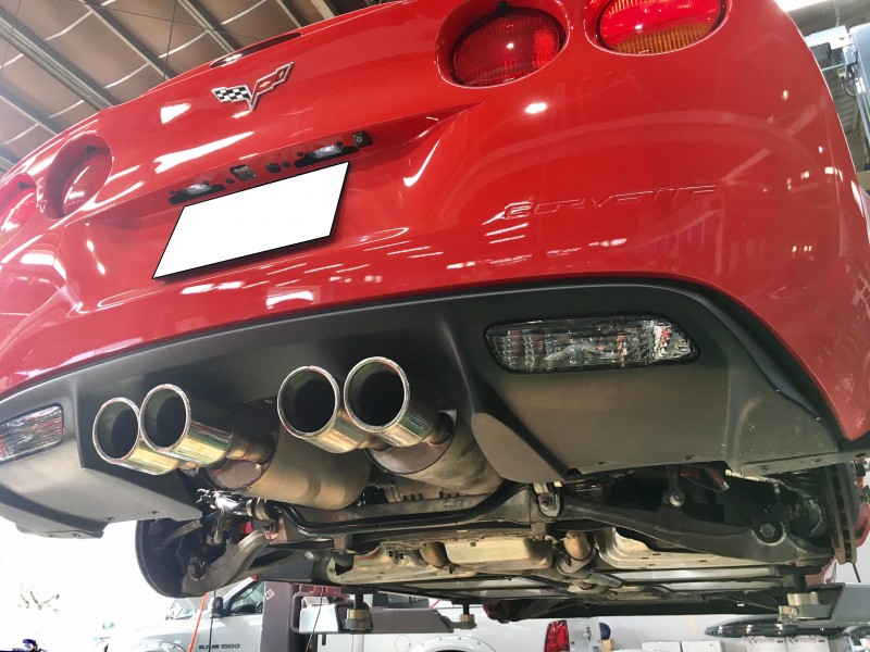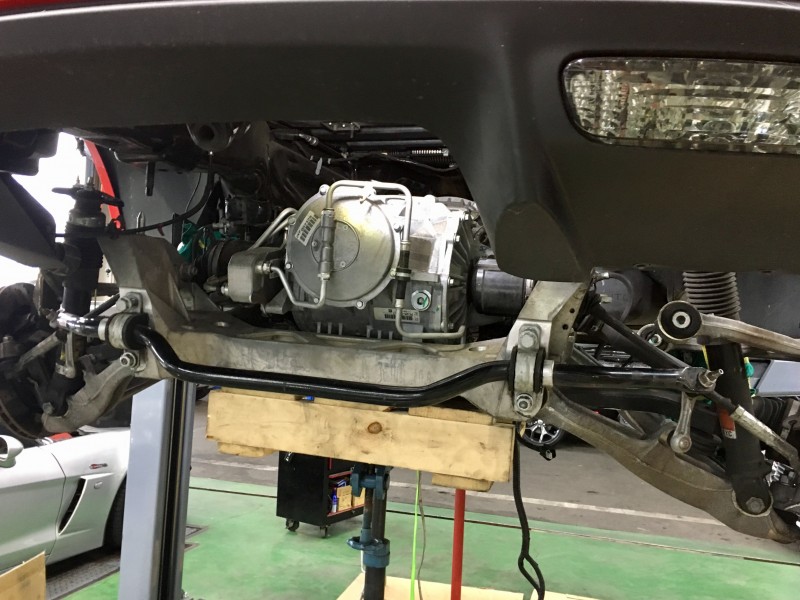 アイドリングや低回転時に、下回りよりガランガランと異音を発する、2012yのC6型シボレーコルベットの作業です。