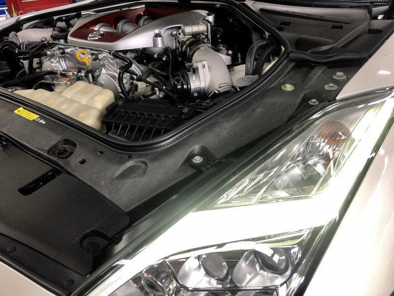 ご遠方より車検整備にてご依頼を頂き、お預かりさせていただいた、R35型ニッサンGT-Rの作業です。