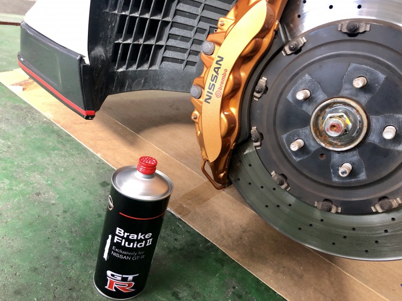 もちろんブレーキフルードも、GT-R専用の純正フルード(1ℓ/¥8000)を使用して入替作業を行います。