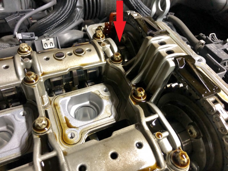 このエンジンでは可変カム機能が備わっているのですが、カムアジャスターの不具合によって、始動時のエンジン回転に対する負荷がかかる状態時にズレが発生し、先のDTC入力及び異音が発生します。