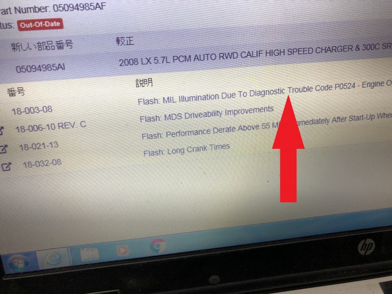 新車製造時から一度もアップデートを行っていない場合、P0524検知に対するフラッシュ情報が存在している可能性があります。