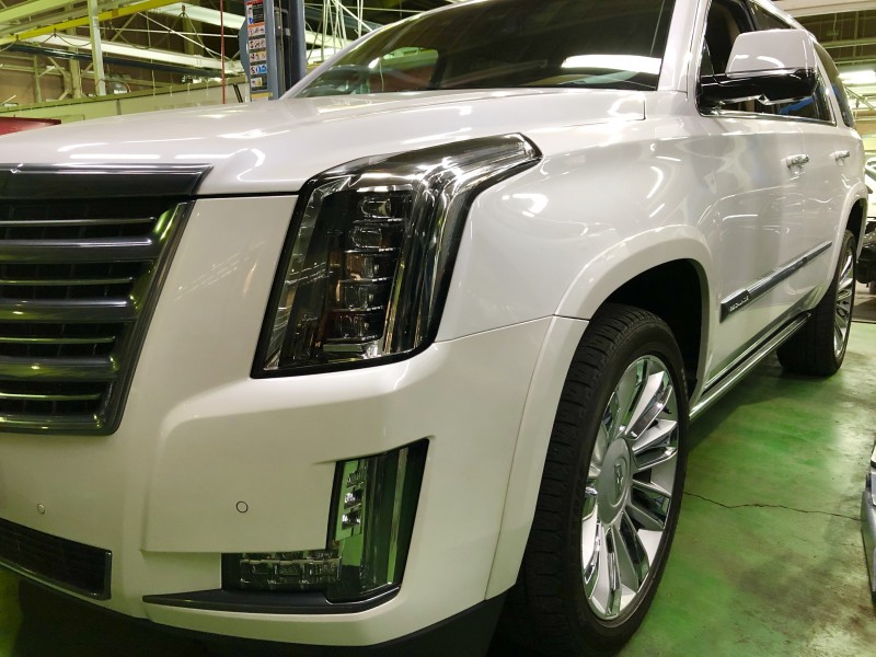 エスカレードの前傾姿勢を補正したい…というご希望にて作業ご入庫頂いた、2016yキャデラックエスカレードです。