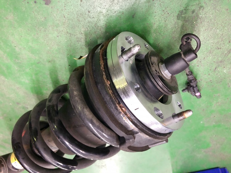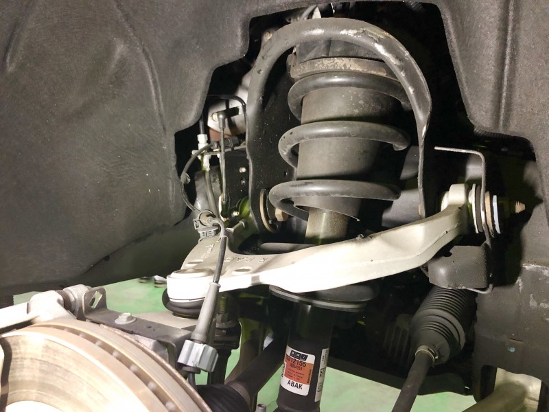 車の車高はフロントを変化させるとリア車高にも影響してくるので、そのあたりの前後バランスを考慮し、フロント側を約1インチ(2.54センチ)リフトアップする作業を実施。