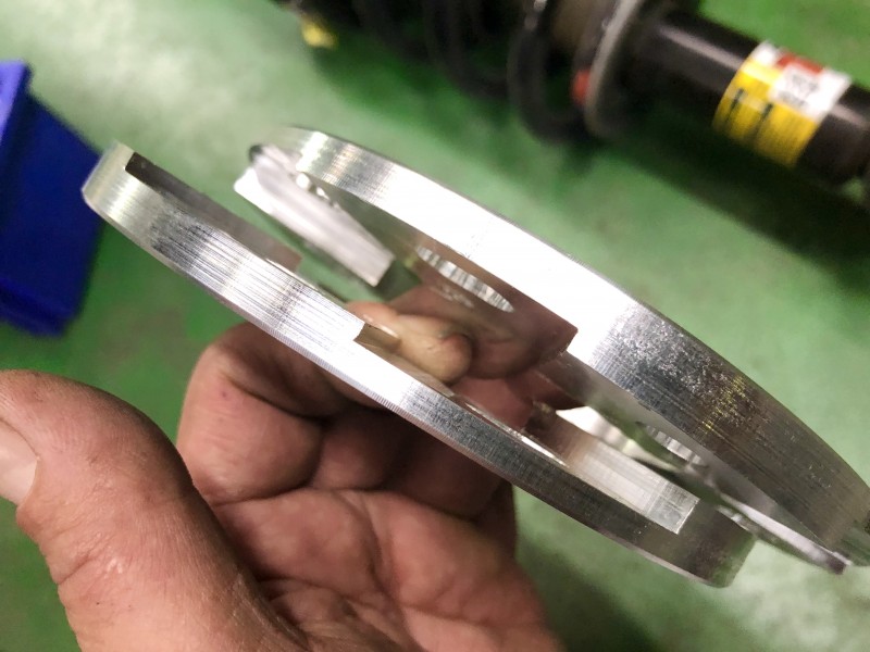 今回は1インチ設定にて(1インチ~1.5インチまで可変)、フロントストラットのアッパーサポートに組み付けました。
