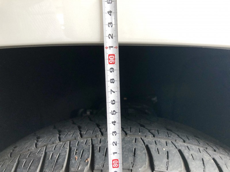 作業前に現車の測定を行うと、接地面からフェンダーアーチまでの高さがフロントで約88センチ。