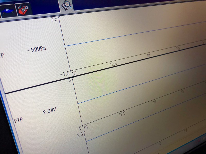 しかしモニターした結果、タンクプレッシャー値が実際の数値と明らかに異なる場合、PCMが各制御を行っても監視するセンサー側の不具合によってタンク内圧値が正常変動しないので、先のDTCが入力されている今回のケース。