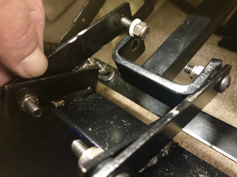 こういった後装備のオットマン可動部は、おそらくテフロン製かと思われるシムを用いてボルト/ロックナットで構成されています。