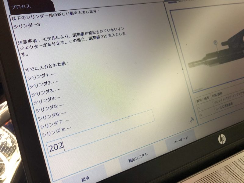 この調整値は各インジェクターに印字されており、インジェクターの変更を行う際はシリンダーに対する調整値のコーディングが必要となります。