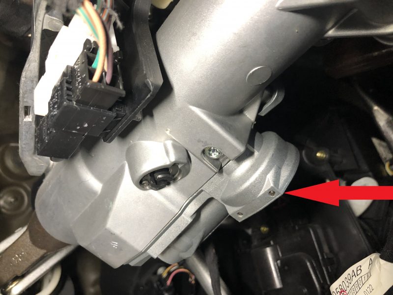 イグニッションキーを挿入して廻しても、ステアリングロックが解除せずセキュリティの警告も点滅状態に陥る、2010yクライスラー300Cの作業です。