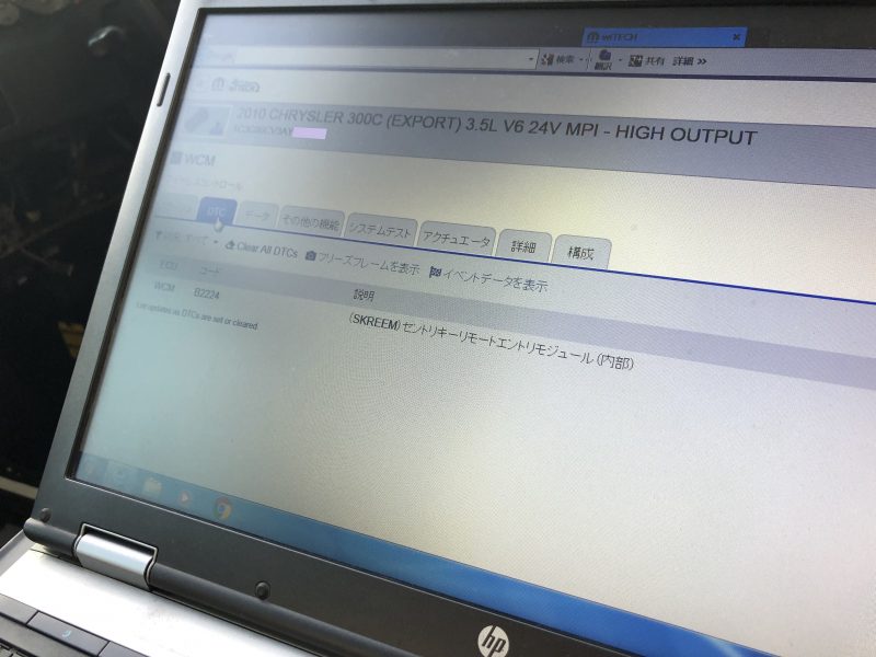 wiTECH2.0(ワイテック2)のDTC診断では、セントリキーリモートエントリモジュール(SKREEM)の内部不具合を検知し、その為セキュリティ解除不能=ELVのステアリングロック解除許可を行わない状態。