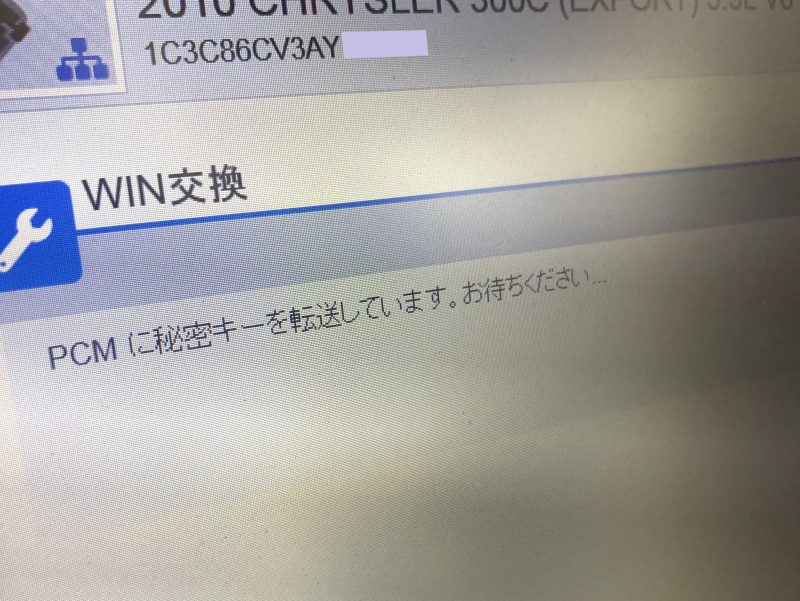 手順としては新品部品のWINを現車に適合させるため、wiTECH2.0を用いて固有化処置のプログラム実行。