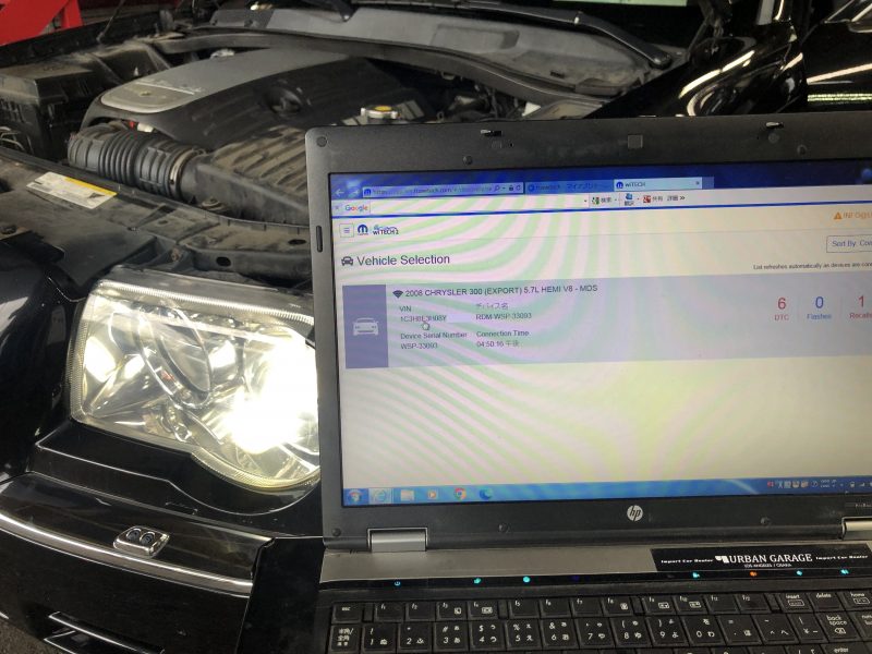 クライスラー/ダッジ系だけでも年間300件以上の各種メンテナンスご入庫を頂いているUGでは、連日オンラインによる診断/プログラム作業を行っています。(2019y度 年間クライスラー&ダッジ修理入庫実績322台)