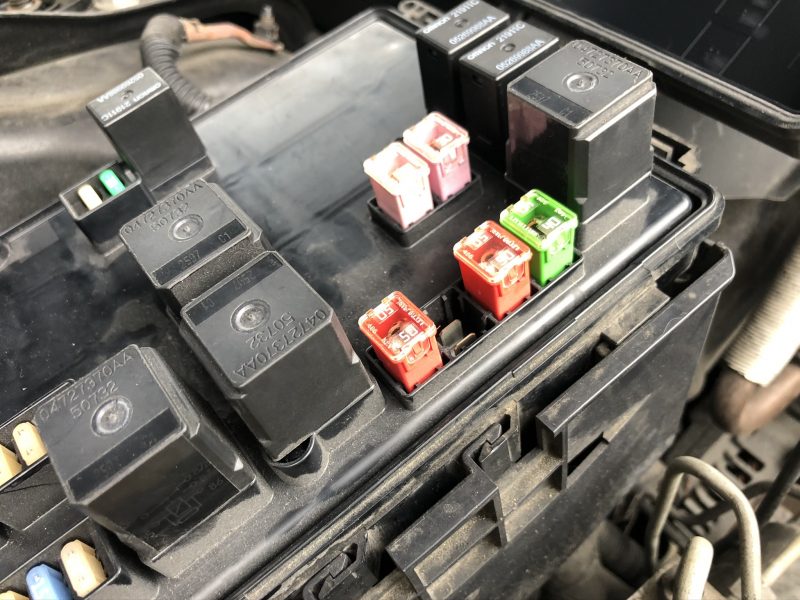 また今回の様な電動ファントラブルによりヒート状態に陥った車両では、ファンのハイ作動通電時間が長く続きリレーやヒューズへの負担も過大状態であったといえます。