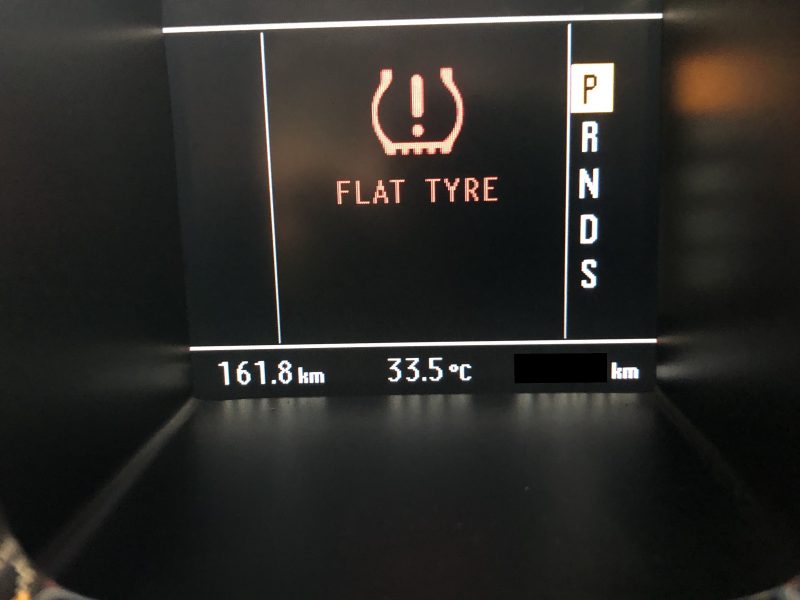 タイヤプレッシャー機能に対する不具合が発生している為、メーターディスプレイに警告表示が点灯しています。