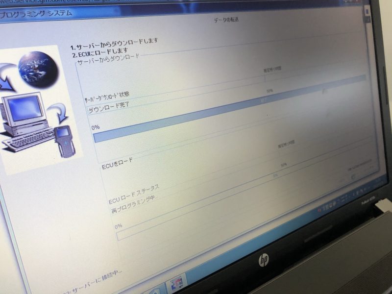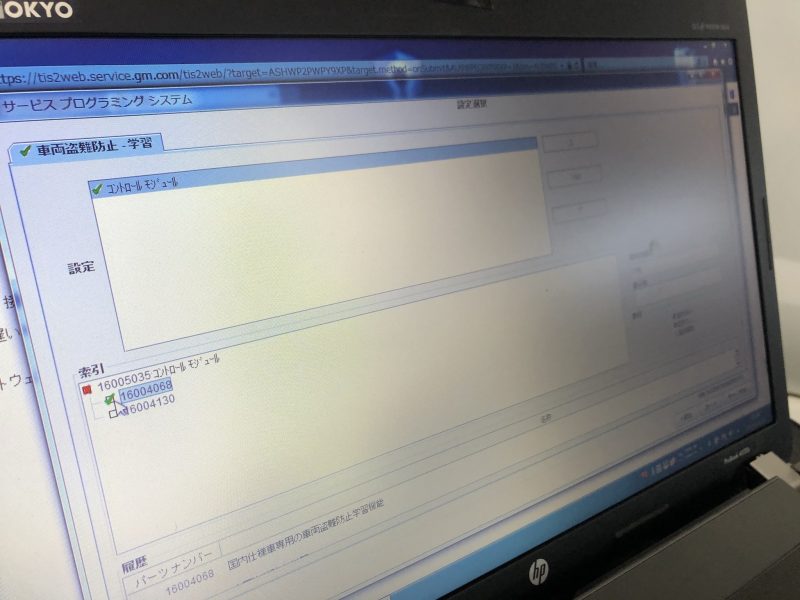 GMサーバーとのオンラインによるサービスプログラミングシステム(SPS)を起動させ、現車のイモビライザーシステムに対する学習プログラムを実行。