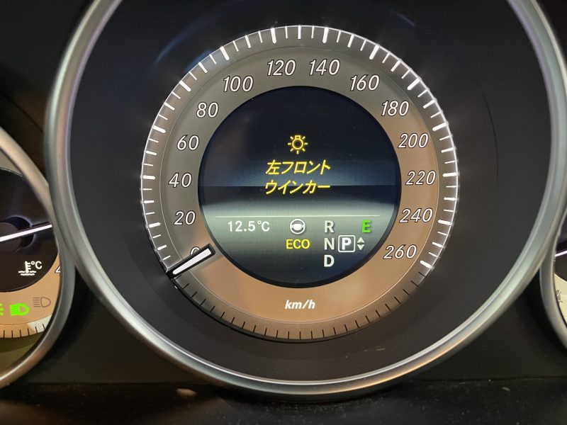車検整備にてお預かりした、W212モデルのベンツE250…ですが、左フロントのウインカーが作動せずにハイフラ状態。