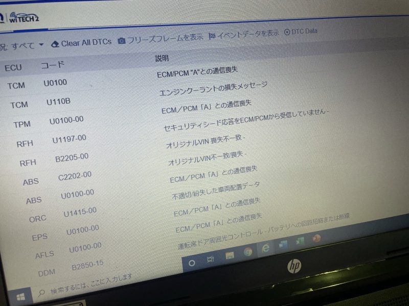 エンジンを制御するECUであるPCM(パワートレインコントロールモジュール)が通信不良状態で、エンジンが全く始動できないという案件にて業者様よりお預かりした、2011yクライスラー300の診断です。