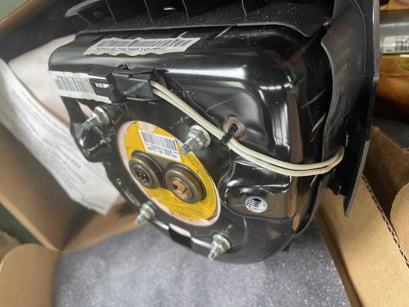 対策済み助手席インフレーターには帯状のテープが巻かれているので、目視でリコール対応済みか否かが確認できます。