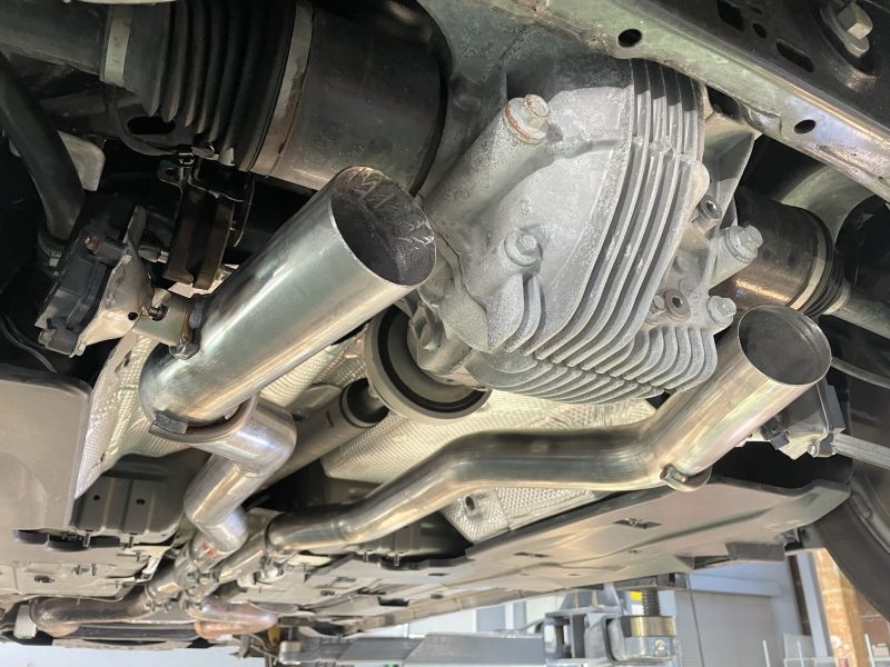 まずはノーマルエキゾーストを取り外して、Borlaシステムキットのインストール作業。