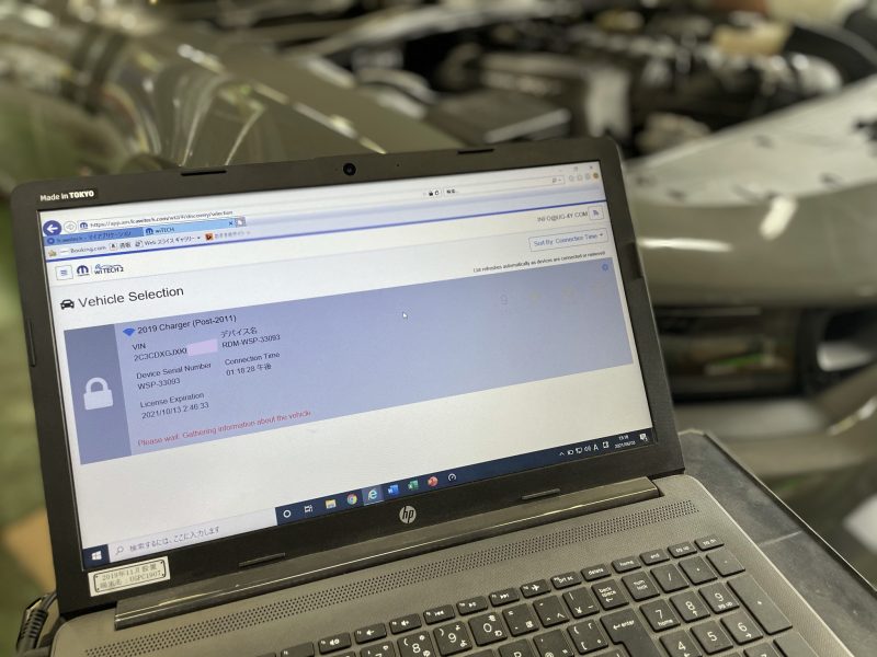 クライスラー/ダッジ系だけでも年間実に400件近い各種メンテナンスご入庫を頂いているUGでは、連日オンラインによる診断/プログラム作業を行っています。(2020y度 年間クライスラー&ダッジ修理入庫実績388台)