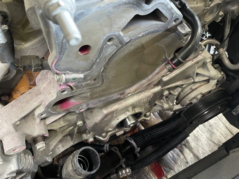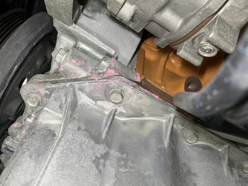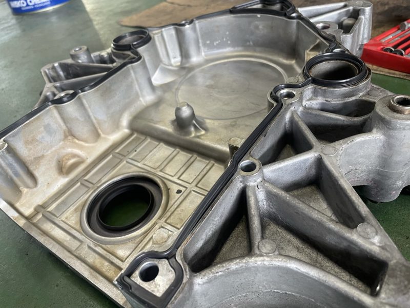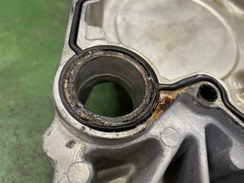 その為タイミングケースのシールガスケットが劣化してくると、タイミングケース内からのオイル漏れだけでなく、ウォーターライン部位からの冷却水漏れも発生してきます。