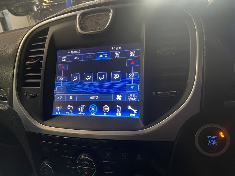 エンジンを始動してもセンターにマウントされたモニターが起動しないという案件にて修理お預かりした、2013yクライスラー300の診断です。