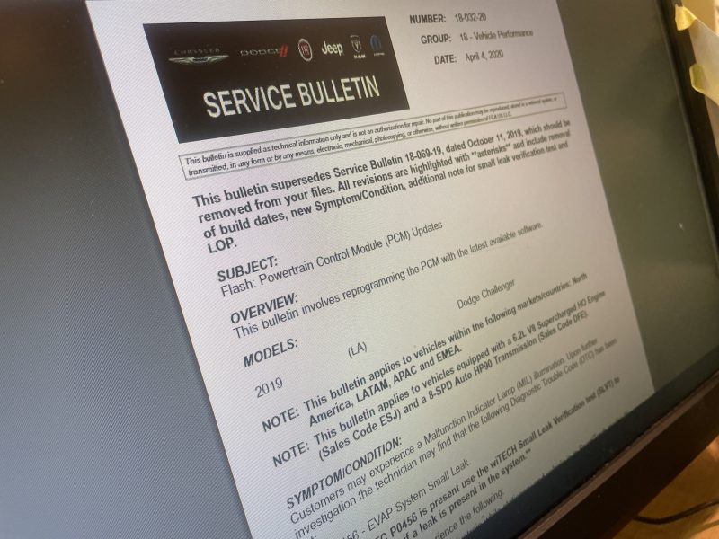 特に今回2019yモデルの6.2スーパーチャージャーエンジンでは、特にEVAPシステムのスモールリークを検知する制御に対してのアップデート情報となります。