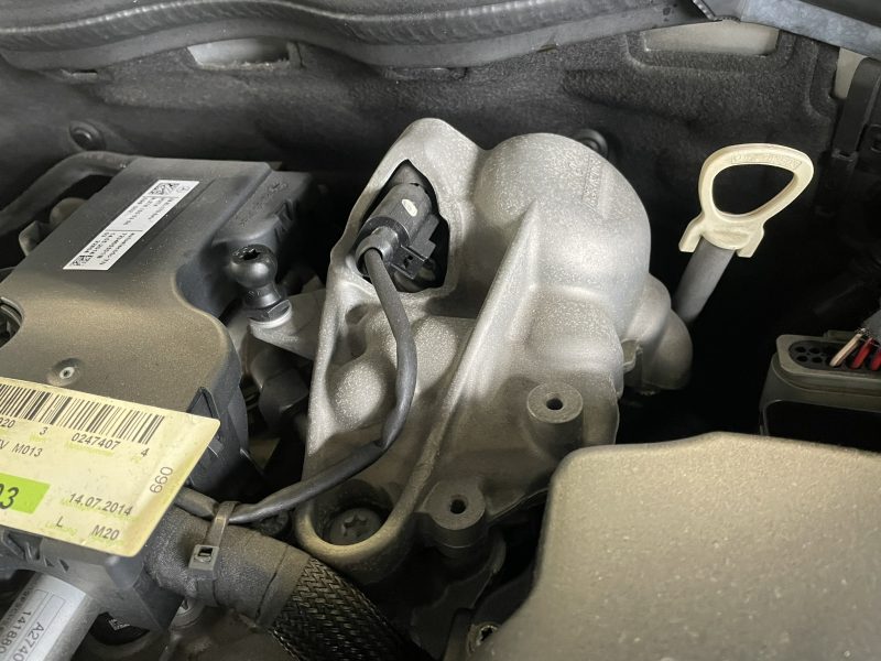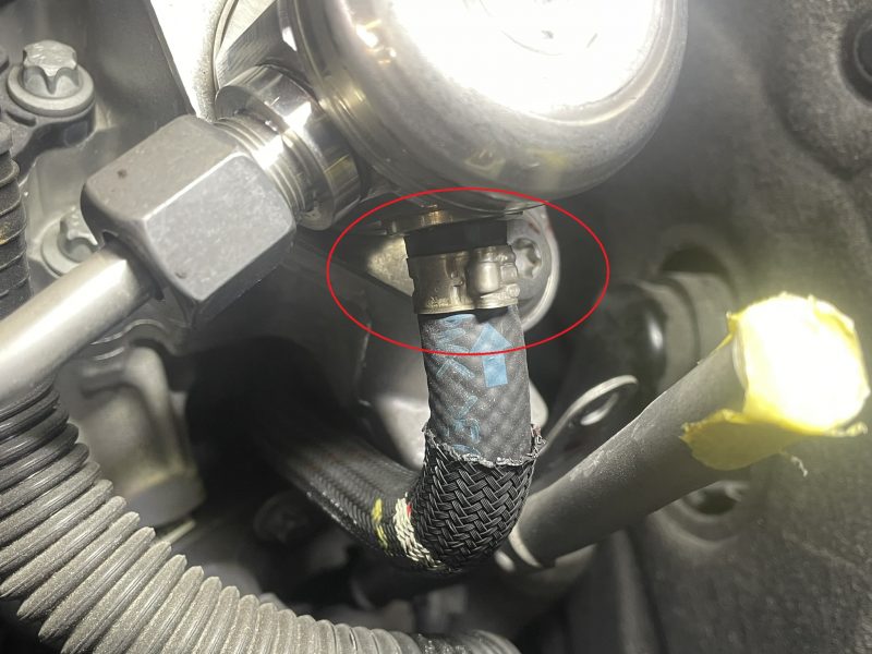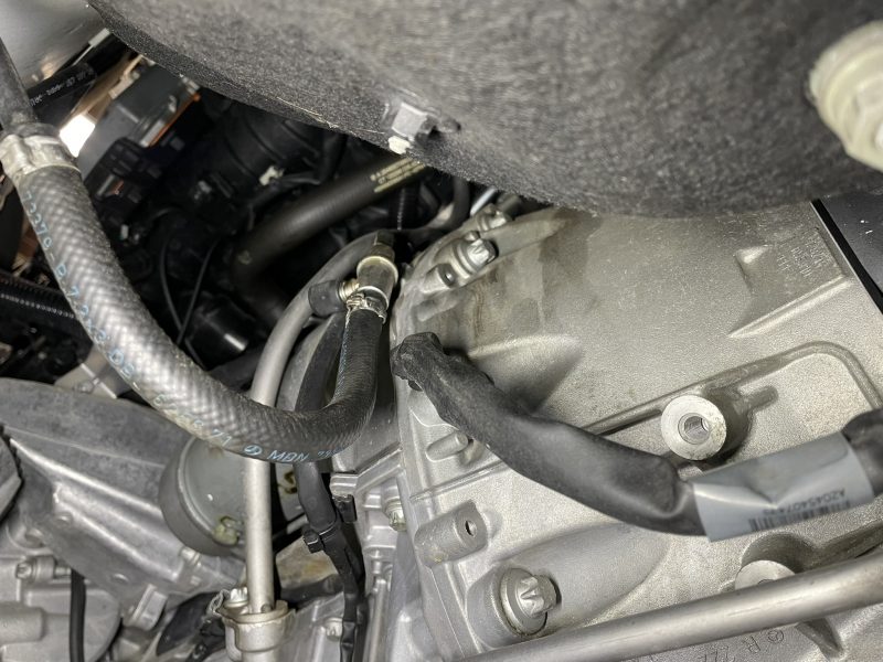 M274では比較的多く発生しているハイプレッシャーポンプ/インレットホースからの燃料漏れ、確認するにはまずポンプを覆っているアルミ製カバーを取り外して点検が必要となります。