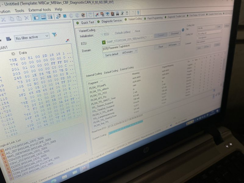 また今回のW207では併せてDRL(デイライト)のカスタムコーディングご依頼も頂き、作業後に施工処置の実行。