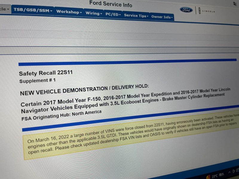 本国フォードメーカーよりセーフティリコール22S11として、3.5Lエコブーストエンジンが搭載された2016y-2017yモデルのナビゲーターやエクスペディション等が対象となります。