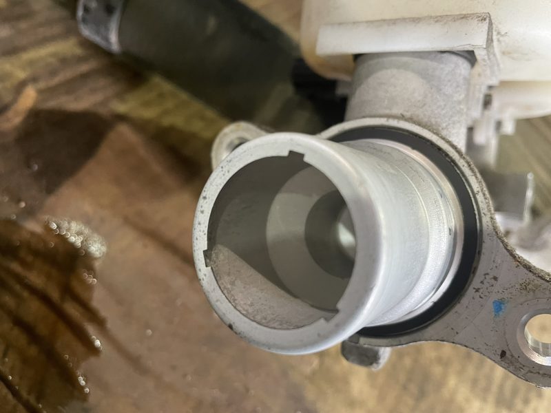 具体的な不具合内容は、マスターシリンダー最後部のカップシールよりフルードリークが発生し、ブースター内部へとフルードが漏れてしまう不具合です。