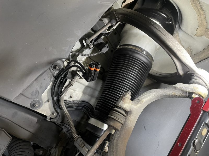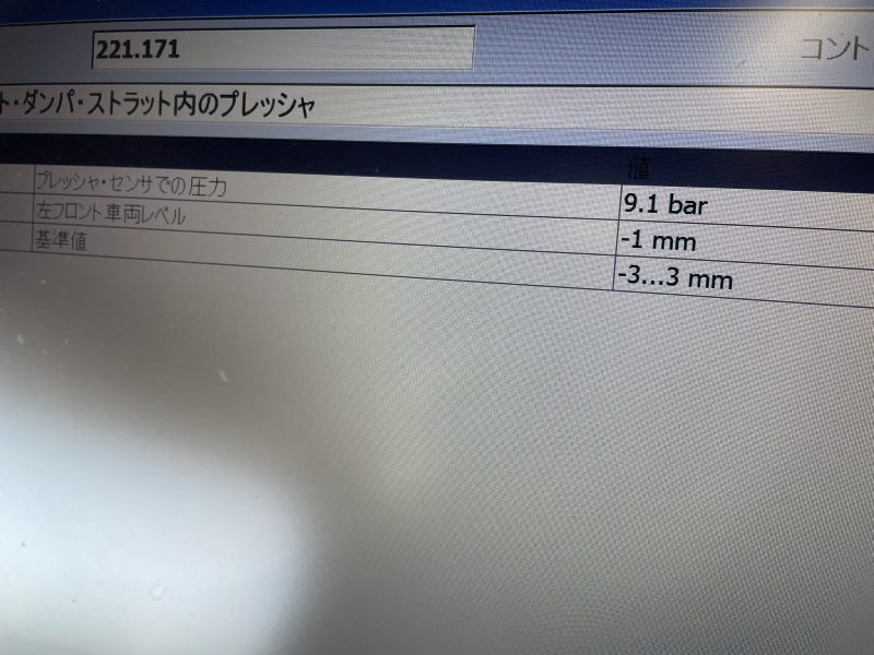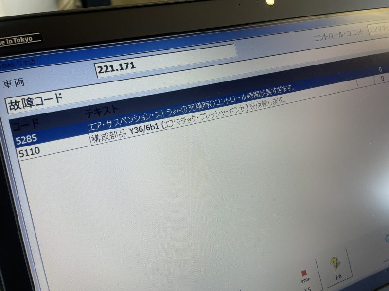 見た目の症状並びに検知されているDTC内容の双方を考慮すると、左フロントエアマチックストラットからのエアリークが濃厚と推測できます。