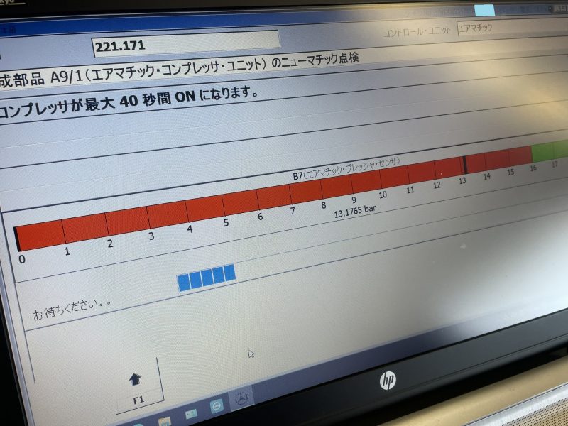 念のためエアマチックコンプレッサーのニューマチック点検プロセスを実行し、コンプレッサー機能に影響が及んでいないか、またリーク箇所が他の存在しないか等を調べていきます。