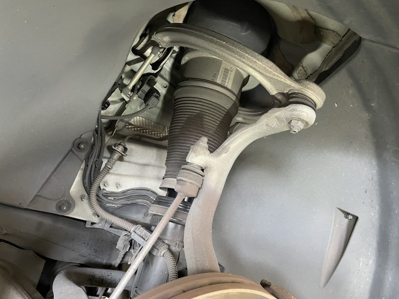 車高が低下して自走出来ないトラブルに陥りレッカーご入庫頂いた、W221モデル/ベンツS550の修理作業です。