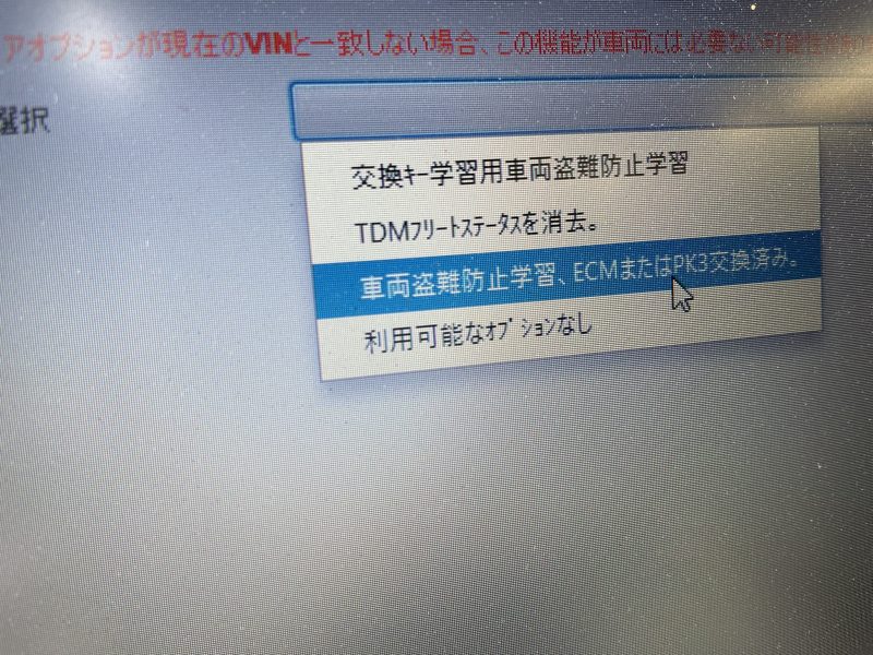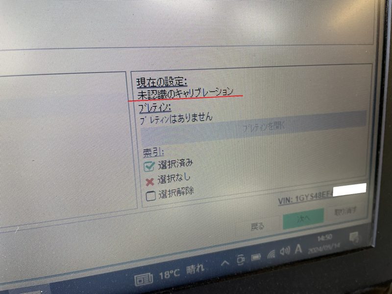 上記診断結果によってはECMの交換作業となりますが、ECMの新品部品はキャリブレーションが未認識状態の為、現車に適応するキャリブレーションを選択してインストール(プログラム)作業が必須となります。