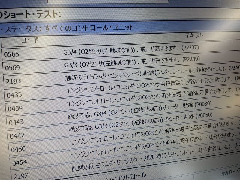 MEコントロールユニットのDTC(故障コード)を確認すると、一見「O2センサー」の不具合かと勘違いするようなコードが検知されています。