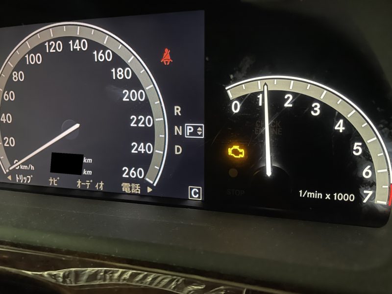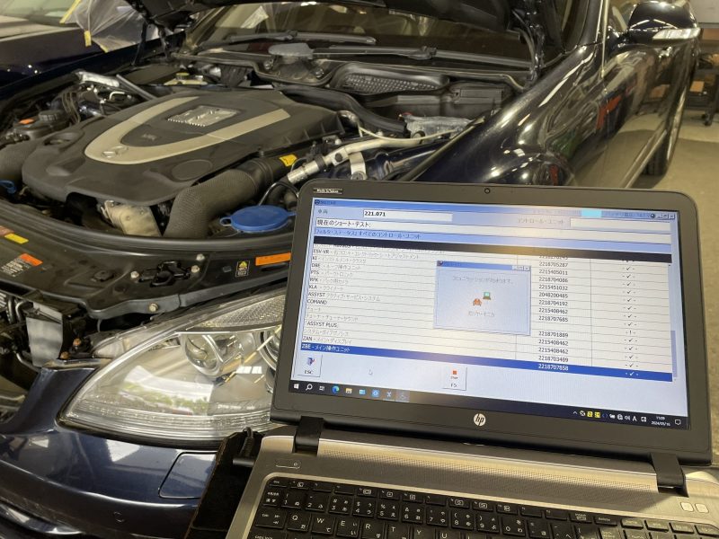 チェックエンジン警告ランプが点灯してしまっているW221モデル/ベンツS500の修理作業です。